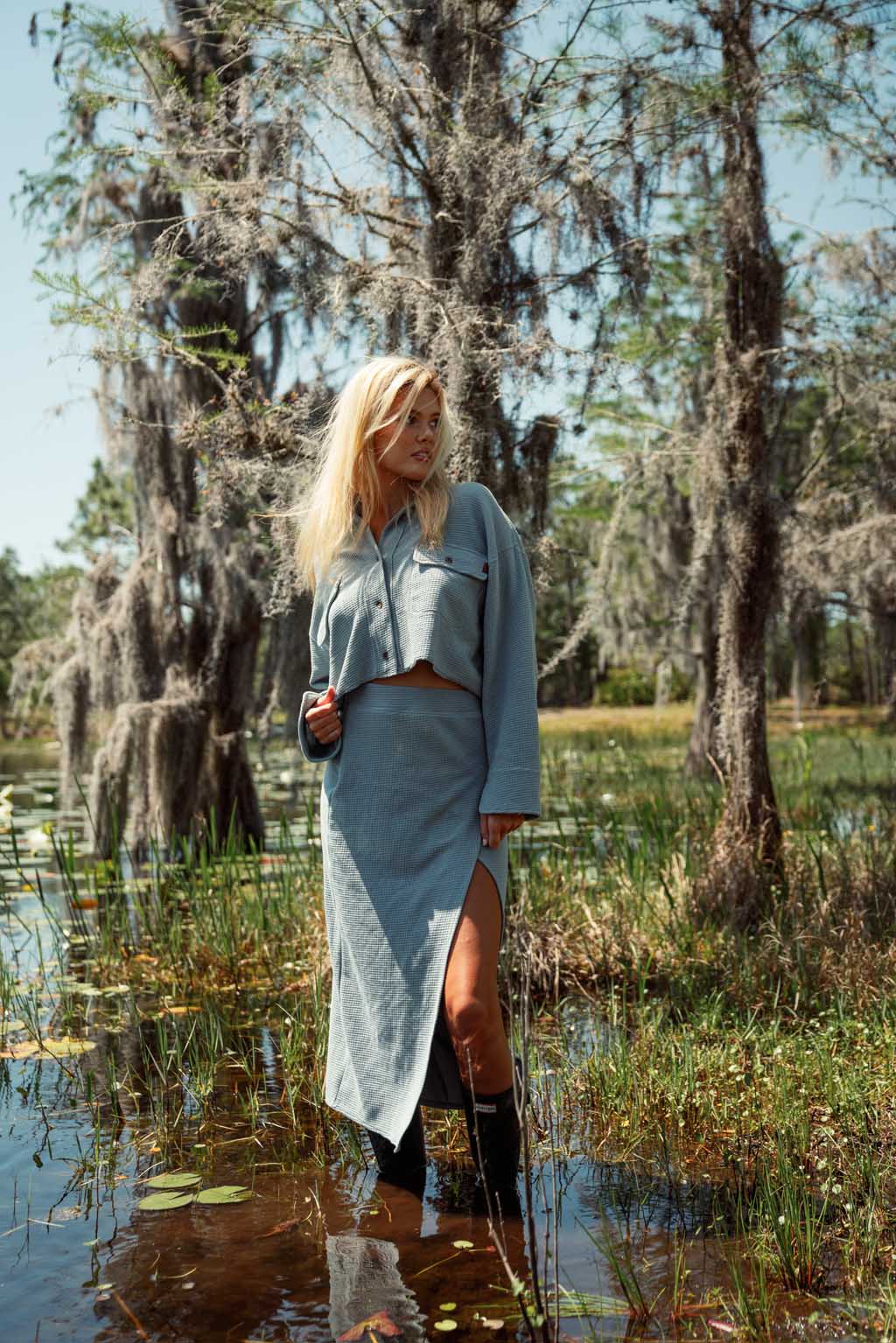 Waffle Cropped Button Up -