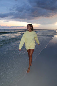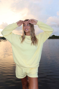 Meet best-selling Butter Crew in a brand new, feel-good buttery yellow—a hue as soft as the fabric itself. The fit is unisex and the fabric is buttery soft - through a special wash treatment designed to enhance longevity, reduce pilling, and elevate softness.