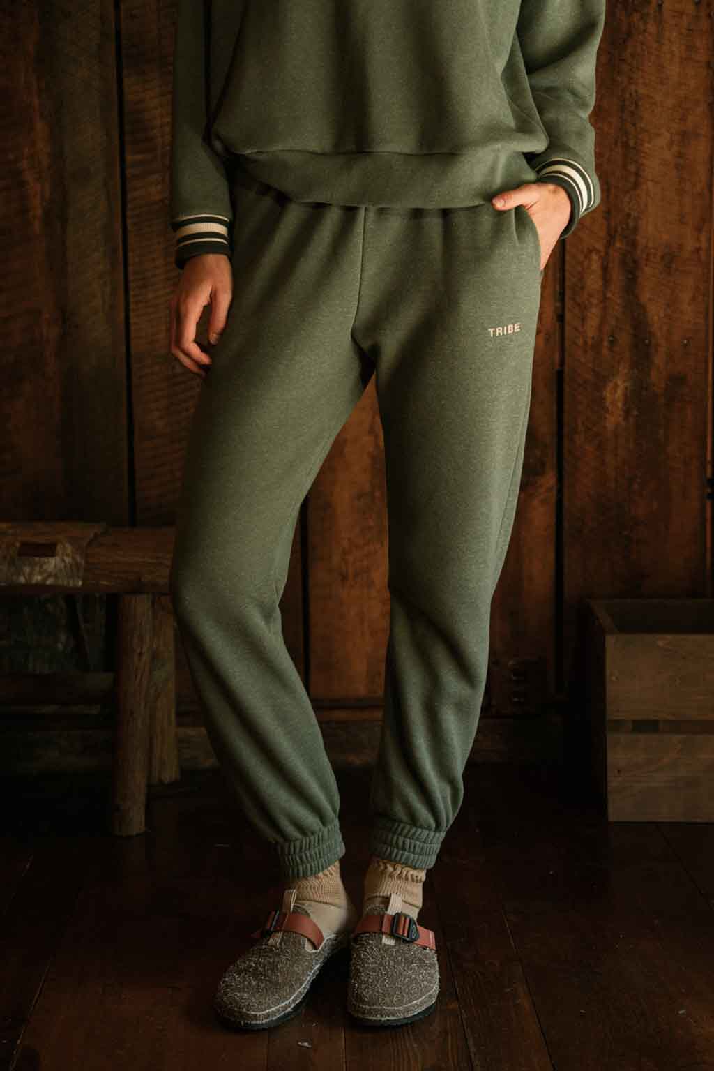 Our world famous Butter Joggers are now available in beautiful new colors! We've go above and beyond with a proprietary enzyme wash to help with pilling and give you the softest sweatpants you'll ever own. These super soft, high-waisted joggers are the perfect companion to our Butter Hoodies or can be styled back to a Traveler Bra! You won't want to take these off! This collection is true to size and features contrast TRIBE embroidery on the thigh. Upgrade your wardrobe with the softest sweatpants made right here in the USA