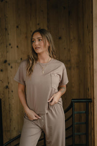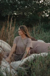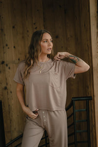 Meet the Dreamer Tee, the perfect blend of softness and effortless style. Crafted from our breathable, non-toxic dreamer fabric, this short-sleeve, boxy-fit tee is designed for ultimate comfort with a relaxed, slightly cropped silhouette. Featuring a delicate script "tribe" embroidery on the pocket, this tee adds a signature touch to your lounge look. Our Dreamer Tee pairs perfectly with the Dreamer Boxer Short or Dreamer Wide Leg Pant and will quickly become your go-to for cozy mornings, restful nights, and everything in between. Made in the USA.