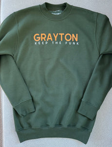 Keep Grayton Funky! The perfect USA-made crewneck with our favorite town printed on the front.