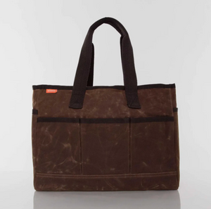 The possibilities are endless when it comes to this waxed canvas Utility Tote with rich brown trim. Whether you use it as a garden carryall, a tool tote, a baby bag or for a trip to the farmers market, it just plain works. Featuring eight outside pockets, and a spacious open top interior, we know whatever it is you have in store for it - you won't run out of places to put things!